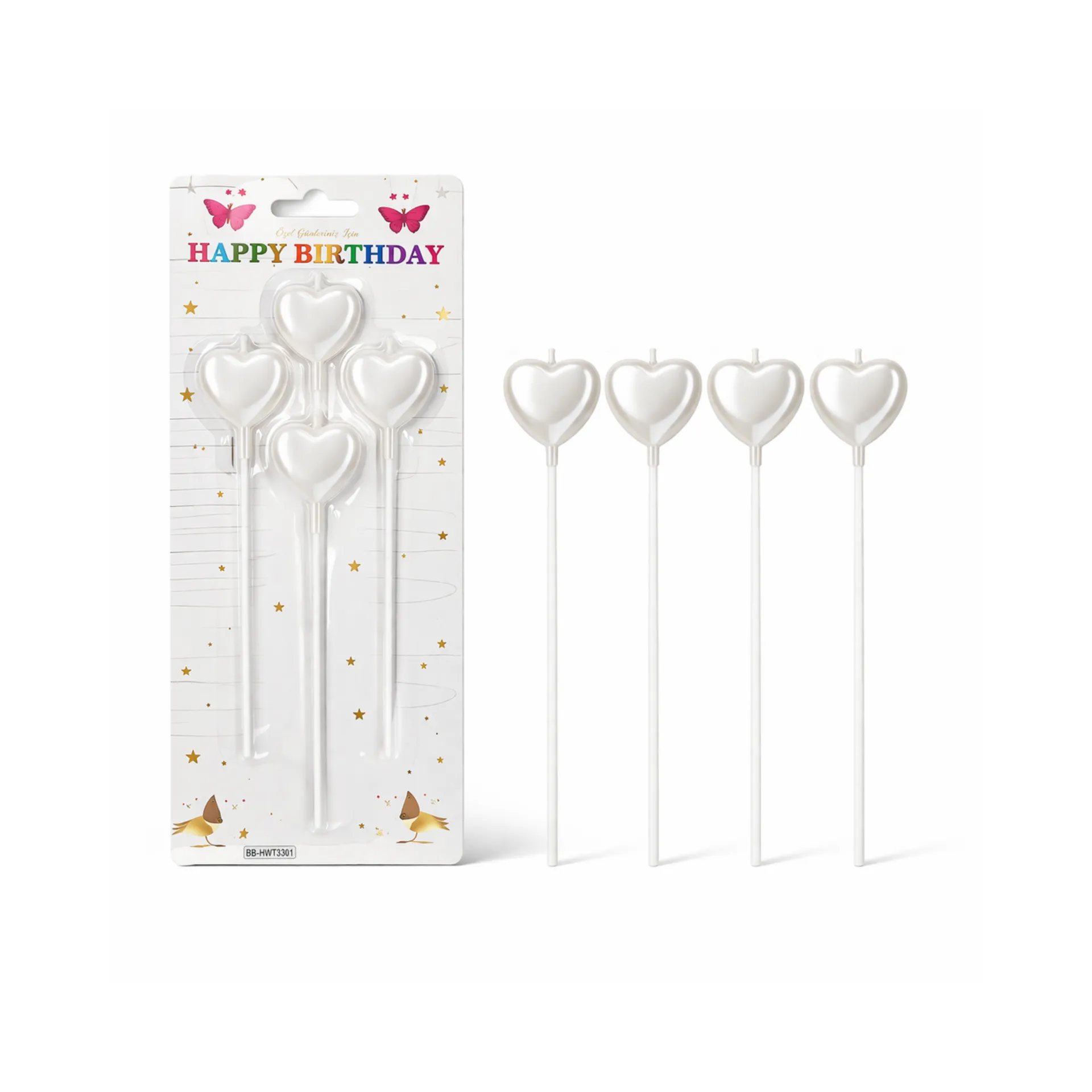 / Toptan Beyaz Çubuklu Kalp Mum 4’Lü