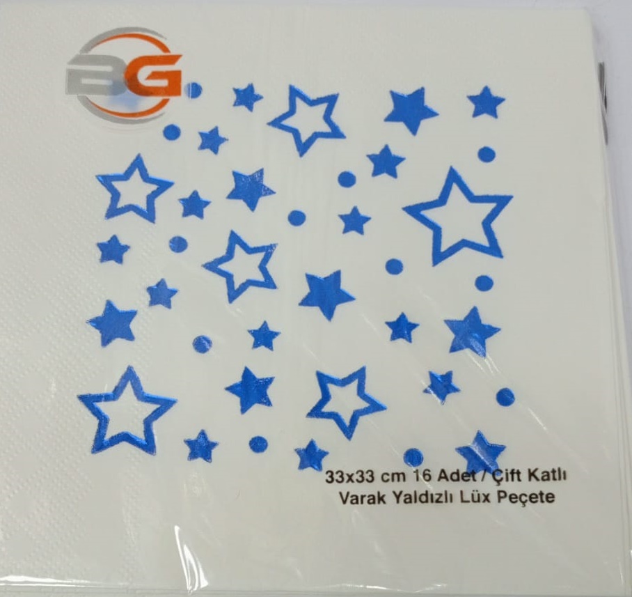 / Toptan Beyaz Mavi Yıldızlı Varaklı Peçete
