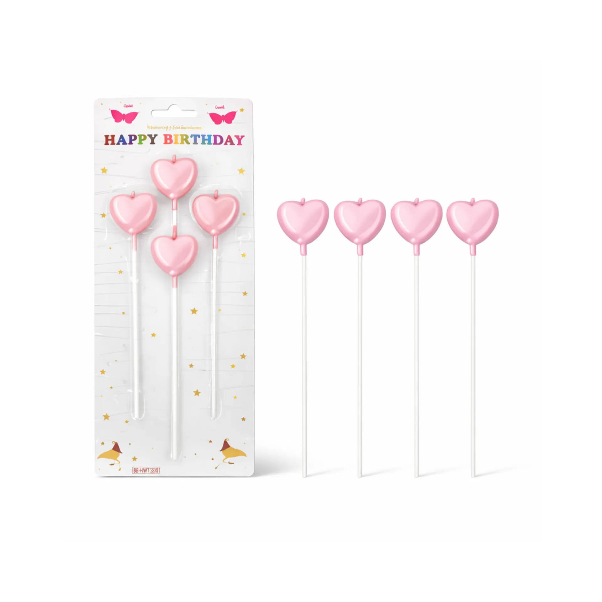 Toptan Çubuklu Kalp Mum Pembe 4’Lü