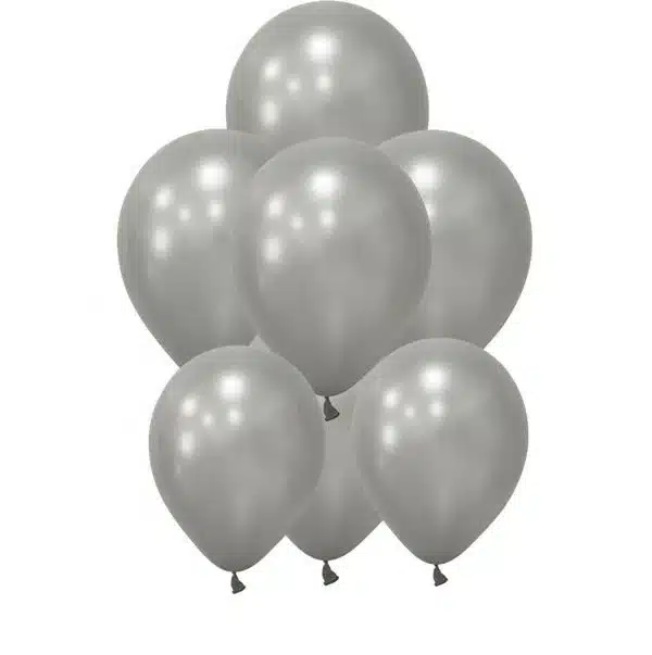 Toptan Gümüş Metalik Balonlar, dayanıklı lateks malzemeden üretilmiştir. Bu balonlar, 30 cm çapında şişer.
