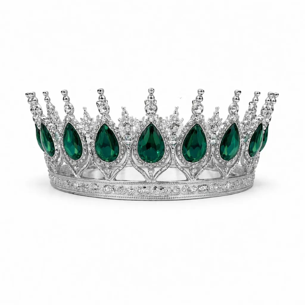 Toptan Gümüş Yeşil Tam Tur Pasta Tacı