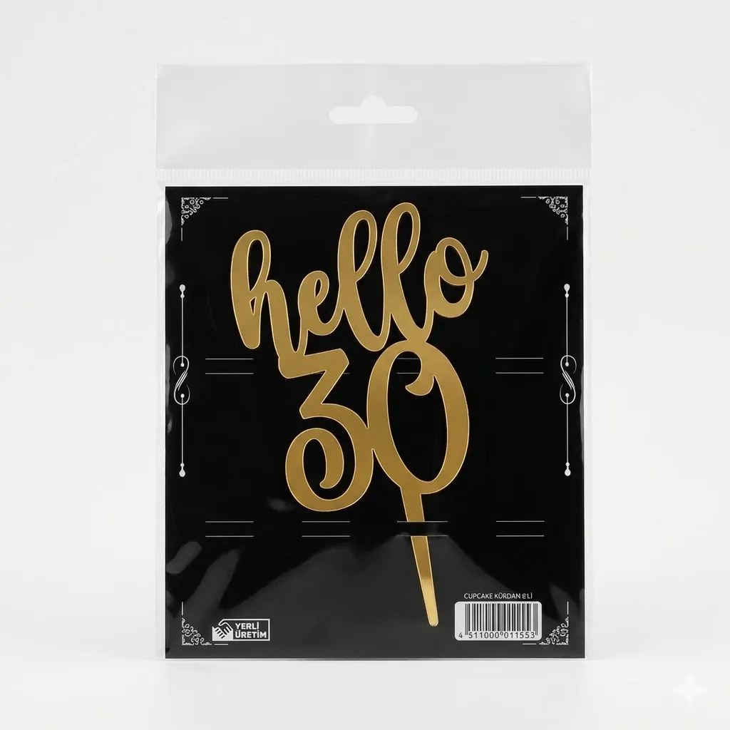 / Toptan Hello 30 Pasta Üzeri Gold Pleksi Pasta Süsü