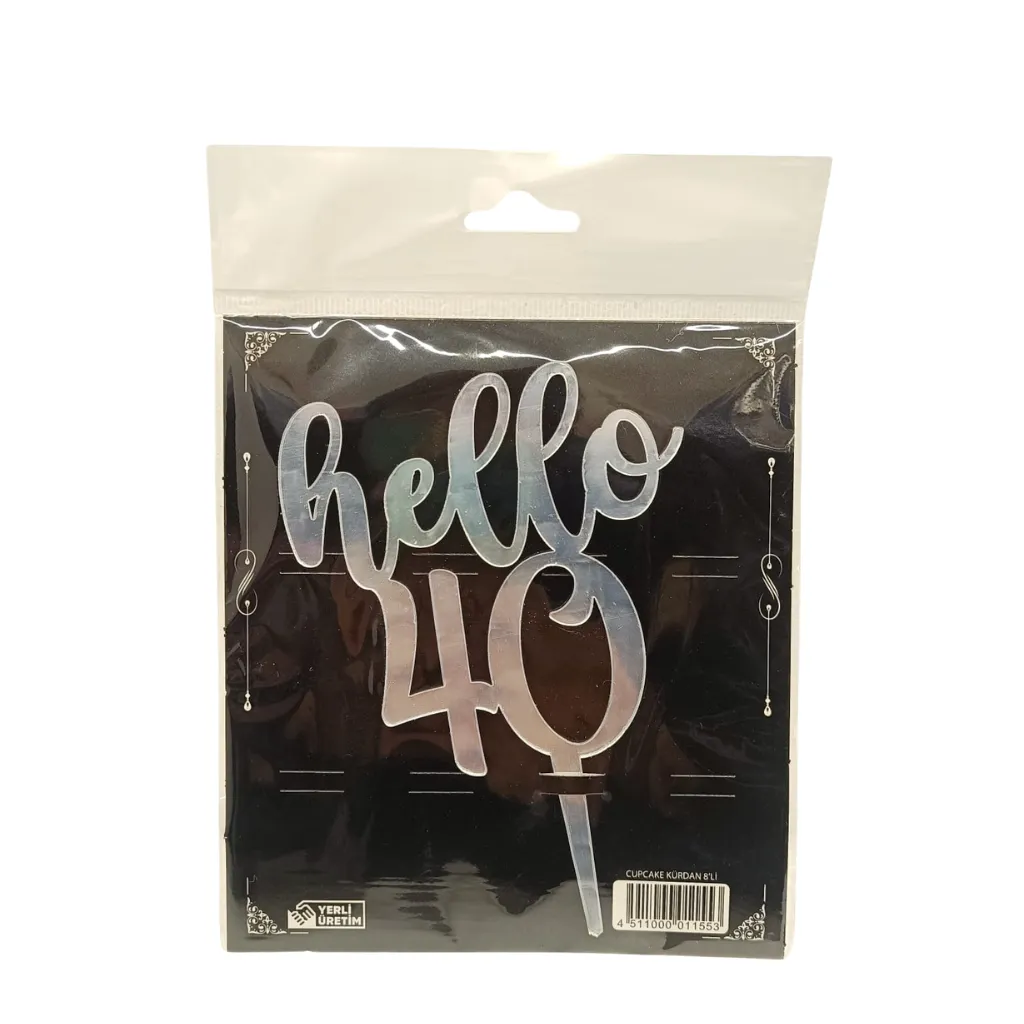 / Toptan Hello 40 Pasta Üzeri Gümüş Pleksi Pasta Süsü