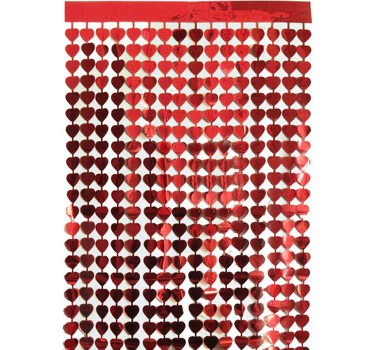 Toptan Kapı Süs Banner Metalize Kalpli Kırmızı