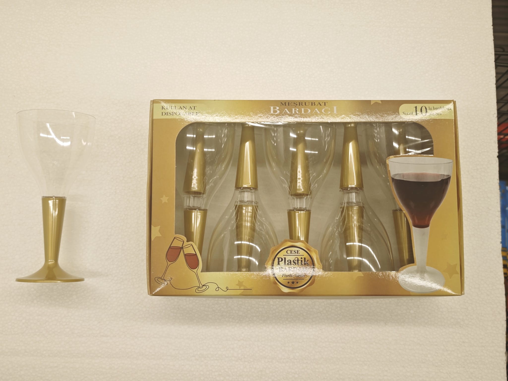 Paket İçinde 10 adet Altın Plastik Şarap Kadehi vardır. Paket Fiyatıdır.