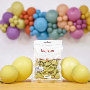 Toptan Kalisan Zeytin Retro Pastel Balonlar, dayanıklı lateks malzemeden üretilmiştir. Bu balonlar, 30 cm çapında şişer.
