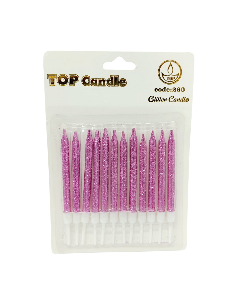 Toptan Top Candle Kısa Pembe Simli Doğum Günü Mumu